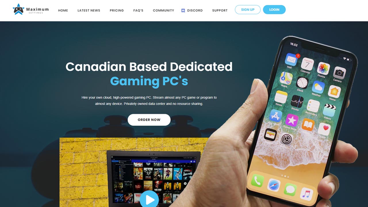Maximum Settings is a cloud gaming service that allows you to rent a high end PC that you can stream instead of using your PC to play really demanding games with. This includes being able to play this rental PC on your phone – specifically on your iPhone.
